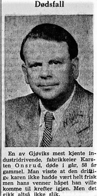 - Karsten Onsrud i Adressebok for Gjøvik by 1942 fra Digitalarkivet