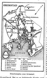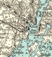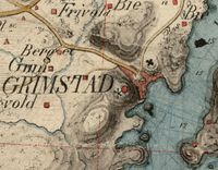 - ↑ Kartet er fremskaffet ved velvilje fra Knut Brautaset som også har analysert og drøftet dette i artikkel i Grimstad adressetidende.