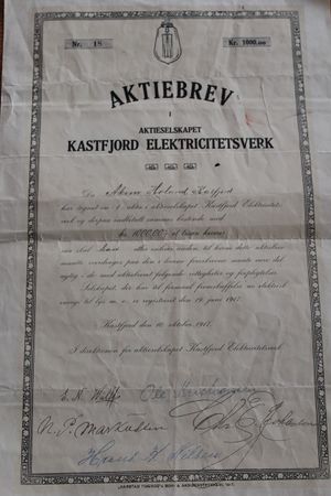 Kasfjord Elverk ble etablert i 1917 og produserte strøm til 60 abonnenter på Møkkeland, Høgda, Eldstenga og Kasfjord med vann fra Grunnvannet. Kapasiteten var til tider for liten, og i tider med lite nedbør ble det nødvendig å spare strøm ved å stenge verket om natten.