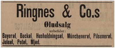 Ringnes & Co. Øludsalg annonserer våren 1893.[1]