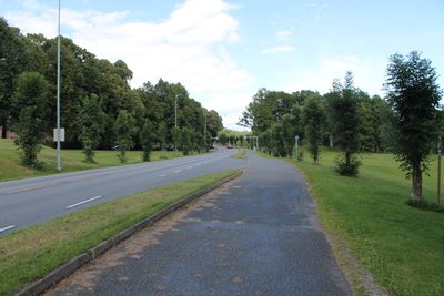 Parti fra Kirkeveien like øst for Asker museum. Det hvite huset er den gamle hovedbygningen på Lille Hvalstad gård.
