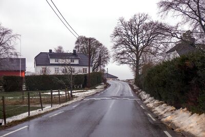 Parti fra Kirkeveien ved gårdene Østre og Vestre Løken.