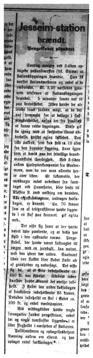 Her er en samling avisartikler som omhandler brannen på Jessheim togstasjon i juni 1904.