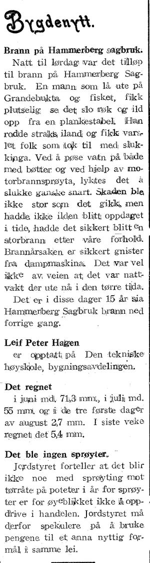 til brann på Hammerberg Sag-