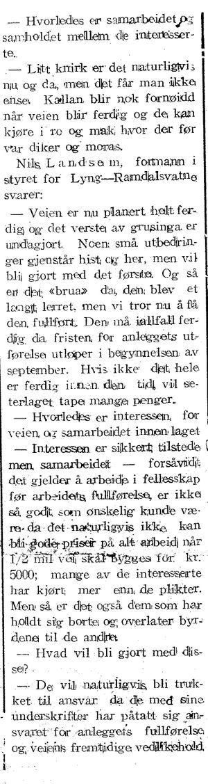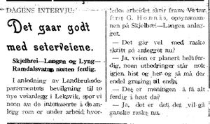 Det gaar godt med seterveiene Skjelbrei-Langen og Lyng- Ramdalsvatne nesten ferdig