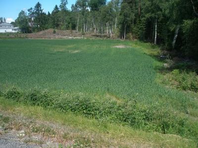 Det går en gammel vei rett på andre siden av kjennet her, den veit jeg ingen ting om, en ser veldig godt faret etter den. Og den går nord/østover forbi Kjensby og vi ser den godt rett oppi her, det er to steder som i hvert fall har en meter høy fylling, veldig tydelig og pent lagt opp, og der er det ei bratt kleiv for det er tydelig at slaan ikke skulle skli, der har det nok ikke gått vogn. Det må ha vært en betydningsfull vei det. Vi ser den tydelig på ca. 200 meters strekning. Jeg har et gammelt kart et eller annet sted, (han Jul-Lars tenker) jeg fikk det fra han Ole Thøger Baggetorp og det er fra ca. 1750. Det er bare tegna, det var nok ikke noe synfaring da, og der står den veien merka opp den går fra Elgetun da og videre, en kommer på hulveier som da gikk over Mona så den kom over her. Så det ser ut som den kom som en bue og som kom fram her og til Elgetun. Og oppe på Elgetunjordet der ser det ut i fra på det kartet så var det et skikkelig eikryss. Det kan jo ha kommet noe østafra da.