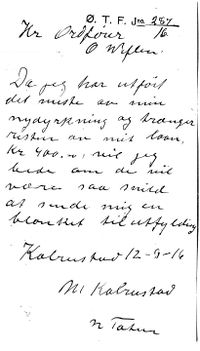 Lån til nydyrking på Øver-Kallrustad. Tidlig på 1900-tallet dyrka Martin Kalrustad opp ca. 20 mål jord på Øver-Kallrustad i Nordlia. Det dyrka arealet økte dermed fra rundt 35 mål til 55. I 1916 skreiv Kalrustad et brev til Østre Toten kommune, der han ba om å få tilsendt en låneblankett for å søke tilskudd om lån til den siste delen av nydyrkinga. Brevet er henta fra Østre Toten kommunearkiv (brevjournalen, nr. 287, 1916).