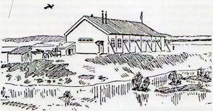 For at kunne fortsætte flyvningen høsten og vinteren utover samt anordne fornøden verksteddrift har det været nødvendig at bygge paa flyvepladsen et skur for de to aeroplaner med tilstøtende verkstedsrum samt paaklædnings- og opholdsrum for flyvere og mekanikere. Kontrakt om opførelse av dette hus blev avsluttet med Strømmen Trævarefabrik for en sum av kr. 8 700,00.»
