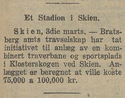 Planane om travbane i Klosterskogen var i alle fall kjende i mars 1919.