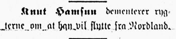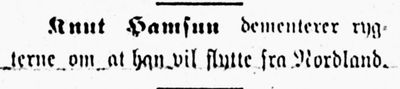 - «- Dette bør hete Knut Hamsuns plass» i Aftenposten, publ. 2011-10-20, lest 2015-02-10.