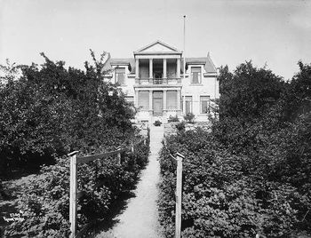 Rikard Kaarbøs gate 17 og 19 i Harstad. Hamsun leide et værelse i nr. 17 i 1915, mens han skrev Segelfoss by.