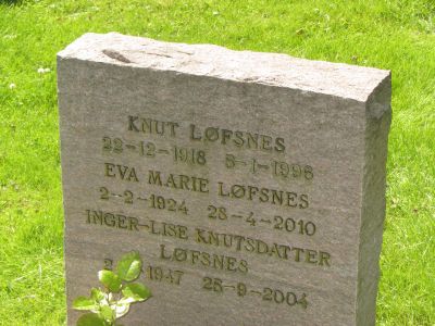Knut Løfsnes er gravlagt på Bryn kirkegård i Bærum kommune, hvor han og familien var bosatt i en årrekke.
