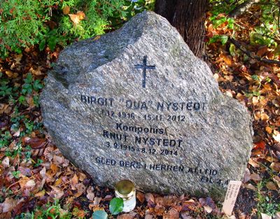 Knut Nystedt er gravlagt på Nordstrand kirkegård i Oslo. Tittelen Komponist er benyttet på gravminnet.