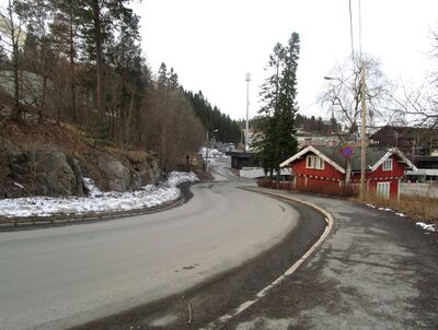 Motiv fra Kongeveien i Oslo. Holmenkollbakken kan skimtes bak til venstre i bildet.