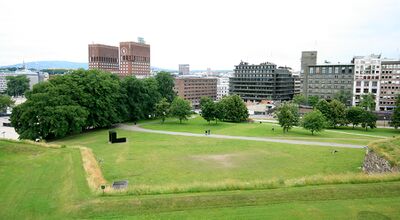 I hellinga mot Rådhusplassen er det reist et monument av president Franklin D. Roosevelt. Det ble finansiert gjennom en landsomfattende innsamling, som takk for USAs hjelp under og etter andre verdenskrig. Monumentet er utført i granitt av Stinius Fredriksen og ble avduket av presidentens enke Eleanor Roosevelt den 7. juni 1950.