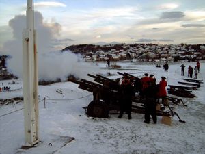 9. juni 1905 ble orlogsflagget med unionsmerket firt for siste gang, og det rene splittflagget heist under militær honnør og salutt. 18. november 1905 ble det igjen saluttert med 21 skudd fra Kristiansten Festning i forbindelse med at Prins Carl av Danmark var blitt valgt til konge av Norge under navnet Haakon VII.