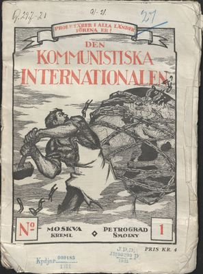 Det svenske Den kommunistiska Internationalen var et av de revolusjonære skriftene som Grepp ble tiltalt for å ha innført. Bilde fra Statsarkivet i Oslo.
