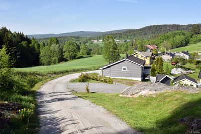 Langs veiens østside ligger flere eneboliger, og på vestsiden småbruket Ajer lille.