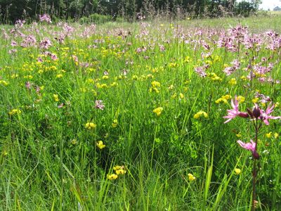 Strandnær slåtteeng i Dalan under Hals i Aure kommune på Nordmøre. Slåtteeng blir best bevart ved moderat gjødsling og sein høyslått — etter at blomstrane har sett frø.
