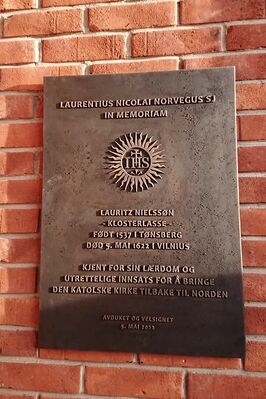 Minneplate over Lauritz Nilssøn i Johanneskirken i Vilnius.