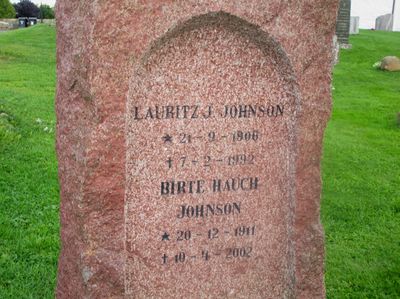 Lauritz Johnson er gravlagt på Nøtterøy kirkegård sammen med kona og foreldrene.
