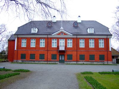 Bygningen ble malt i 1850 i en rød senempirefarge, og med hvitmalte gesimser og vindusomramninger med dype grønne skodder.