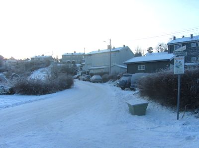 Vintermotiv fra veien Leirskallbakken i Oslo.