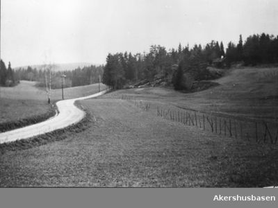 Leirskallen oppe til høyre. Veien tilsvarer dagens Roald Amundsens vei på dette punktet passerer Svartskogsletta på E18 (ukjent fotograf)
