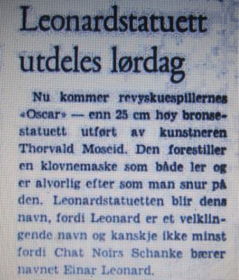 - Aftenposten 16. oktober 1968, notis om den kommende første utdelingen av Leonardstatuetten