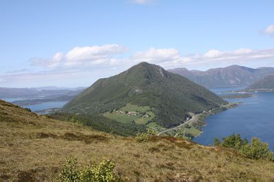Lidaveten. Til venstre skimtar vi Berkneset, i lida hitover Eidem og til høgre Sørheim og ein del av Eiksundsambandet med vegen og innslaget til tunnelen under Storfjorden (opna 2008).