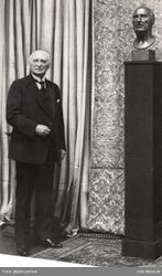 Prytz ved en byste i bronse av seg selv, utført av Wilhelm Rasmussen i 1928.
