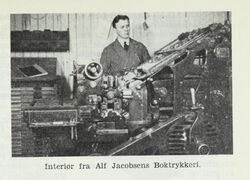 MaiInterør fra Alf Jacobsens Boktrykkeri i Brevik. Månedens dugnadVi måtte jo ha en dugnad knytta til boktrykking i jubileumsåret 2019. Men som vanlig strekker vi oss inn i nærliggende temaer, og tar med trykkekunst generelt, bokbinding, bokhandel, forleggervirksomhet, aviser og papirproduksjon. Her er vi ikke minst ute etter det lokale, de små virksomhetene som har vært med på å forme lokalsamfunn rundt om i landet. Som et eksempel kan vi nevne Sivert Aarflot fra Volda, og hans avis Norsk Landboeblad og trykkeriet på Ekset. Hans historie er svært spesiell, men det har vært mange slike tusenkunstnere med gode ideer og nok av gjennomføringskraft, og altfor mange er ukjent for de fleste. Se for eksempel på annonsene vi har liggende i Kategori:Trykkerier – vi mangler artikler om de fleste av foretakene. Men vi har jo også lyst på artikler om de første trykkeriene i norske byer, de store forlagene og om sentrale personer. Her er det bare å bruke fantasien. Og skulle det skorte på den, har vi laget ei ønskeliste. Visste du at vi også har ei forside for wikidugnad? |