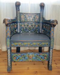 Uke 24 / Veke 24Lars Kinsarvik (1846–1925) vaks opp på garden Hus i Kinsarvik i Hardanger, i eit miljø som ga impulsar til rosemaling og treskurd. Han blei fengsla av dette og utvikla seg til kanskje si tids fremste treskjerar. Først med sete i Hardanger, seinare på Sunnmøre. I 1905 flytte Kinsarvik med familien til Ørsta. Grunnane til dette var nok fleire. Ein var at han ei tid hadde ikkje hadde så store innkomer, og hadde ansvar for ein stor familie: kone og fem barn. Det var Andreas Austlid som overtalte Kinsarvik til å velje Ørsta. Austlid var skulestyrar på den nyss oppretta folkehøgskulen i bygda. Han hadde tidlegare vore lærar ved folkehøgskulen i Ullensvang. Der hadde Austlid og Kinsarvik blitt godt kjende, fordi Kinsarvik var sterkt medverkande til både oppretting og drift av skulen. I Ørsta fekk Kinsarvik arbeid som lærar ved Møre folkehøgskule. Samtidig hadde han inntekter av å vere ein mykje brukt foredragshaldar i ungdomslag og andre organisasjonar.Les mer... |