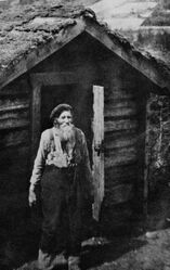 Tosten Raudskjegg på Nedre Nørjordet, fotografert i døra til eldhuset der han budde som føderådsmann.