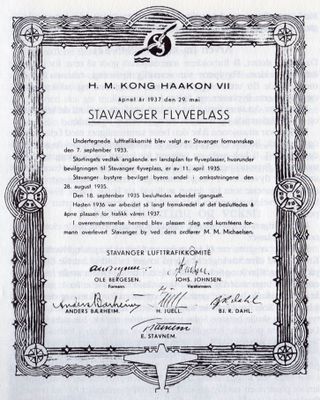 Våren 1933 tok den nystartede Stavanger Flyveklubb opp spørsmålet om en flyplass for Stavanger. Her var det også stor arbeidsledighet, hvilket påskyndet arbeidet med flyplassen. Stavanger lufthavn, Sola ble åpnet 29. mai 1937, og Stavanger fikk derved sin flyplass hele syv år før de fikk jernbanetilknytning til resten av landet. Oslo lufthavn, Fornebu og Kristiansand lufthavn, Kjevik ble åpnet 1. juni 1939.