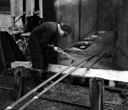 Her vert spanta i kaisinga kappa, det var flattjarn 2 x 3/8 tomme. Kaisinga vart bygd attmed kaia, og vart taua dit når den skulle om bord i båten.
