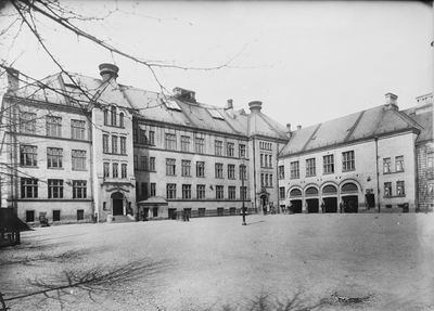 Første byggetrinn sto ferdig i 1908 og inkluderte oppgang C, D og E. Hovedbygningen er i fire etasjer og har to fløyer som sammen med portbygningen omkranser skolegården.