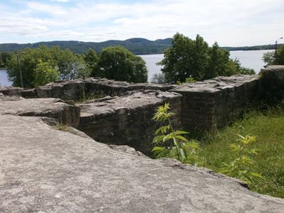 Kirkens sørvegg, som er bevart i omkring fire meters høyde.
