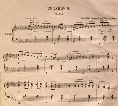 Mathilde Berendsen Nathan studerte piano hos nordmannen Edmund Neupert (f. 1842 i Christiania) ved Det Kongelige Danske Musikkonservatorium i København og fikk etterkvart reisestipend for vidare studiar i Paris, der ho var elev av Madame Rabaud. Ho heldt konsertar både i København og Paris, og etterkvart òg i Brødrene Hals sin konsertsal i Kristiania. Ho trappa ned konsertverksamheita — det seiest at det var etter påtrykk frå mannen — og konsentrerte seg meir om komposisjon for klaver.