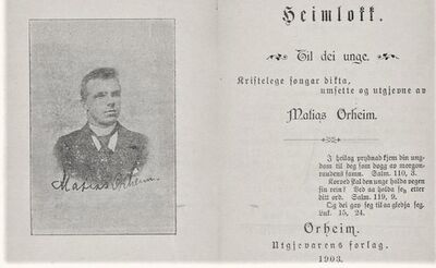 Matias Orheim vart kristen under eit pinsestevne i Stårheim i 1900. Berre tre år etter kom den første diktsamlinga hans, Heimlokk.