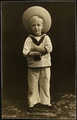 Kronprins Olav ble avbildet i matrosdress i 1907. På dette tidspunktet hadde matrosdressen allerede vært populær i mange år, men bildene som fra 1907 ble spredd av kronprinsen i hvit matrosdress og stråhatt bidro likevel til å ytterligere øke interessen for matrosklærne. Assosiasjonene til den norske marine ligger som en undertone også i disse bildene, som finnes i flere versjoner. Han ble avbildet både barhodet, med stråhatt og med uniformslue.