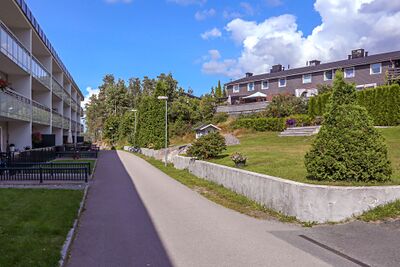 Parti fra Mellomåsveien med både terrasseblokk og rekkehus.