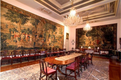 Rommet ble innredet av Arneberg og Jahre på en helhetlig og nøye gjennomtenkt måte med møbler, tre store gobeliner fra 1600-tallet, engelske stilmøbler i mahogni og store prismelysekroner i krystall som henger i taket. I tillegg annet løst inventar, og hele rommet er fortsatt intakt og fredet.