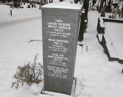 Milda Dorothea Prytz er gravlagt i familiegrav på Vår Frelsers gravlund i Oslo. Titlene Docent og Dr. Philos. er benyttet på gravminnet.