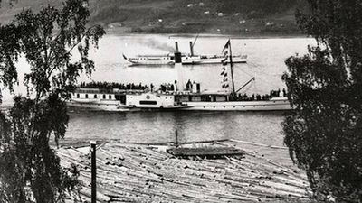 - 1866: Den første lokalbåten "Lettvindt" settes i rute mellom Hamar og Toten, og innover Furnesfjorden med anløp på en rekke lokale gårdsbrygger. Anskaffer: Hamar Handelsstands Forening.
