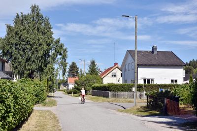 Moengata i Lunde sentrum sett østover ved Bakkevegen.