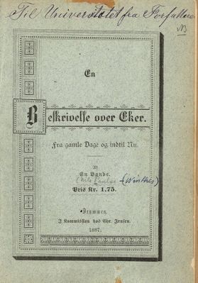 - Nilsen, Paul: Momenter til en Beskrivelse over Eker, Drammen 1887. Digital utgave.