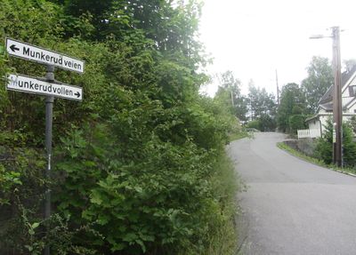 Veien har navn etter Munkerud gård (gnr. 181/1) og ble navnsatt i 1937. Den eldste bebyggelsen er i veiens nordligste del, nærmere bestemt mellom Oberst Rodes vei og Magnus Hydles vei.