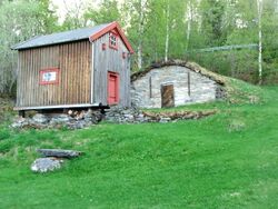 Grimsrudbygningen, et våningshus fra 1700-tallet, var den første bygningen museet kjøpte inn. Foto: Commons-brukeren Jensens (2007)
