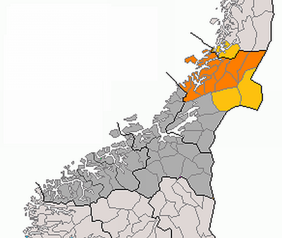 Kart over Midt-Noreg med Namdalen markert i okergult. Kartet er frå før kommunereformen i 2020.
